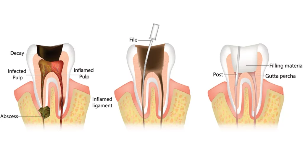 In the final stage, a crown, an artificial tooth, is placed over the filling. A metal post is inserted to keep the crown in place and attached to the tooth. It is done when a significant portion of the natural tooth is missing and doesn’t happen in all root canal cases.